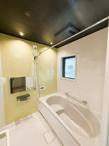 防水性能の高いシステムバスへ一新したことで、水漏れの心配がなくなり安心してお使いいただける浴室となりました。デザイン面では、チャコールブラックのフラット天井に合わせて浴室暖房乾燥機もブラックを選定し、統一感のあるスタイリッシュな空間に。さらに、高断熱浴槽と断熱風呂ふたの組み合わせにより、お湯は4時間経過してもわずか-2.5度以内。快適な入浴時間を長く楽しめるうえ、追い焚きの回数を減らせるため家計にも優しい省エネ仕様となっています。