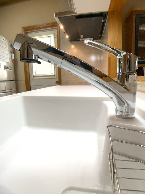 シンプルなレバー操作でお湯や水の出し止めや温度調整がスムーズに行え、日常の調理や洗い物を快適にサポートします。