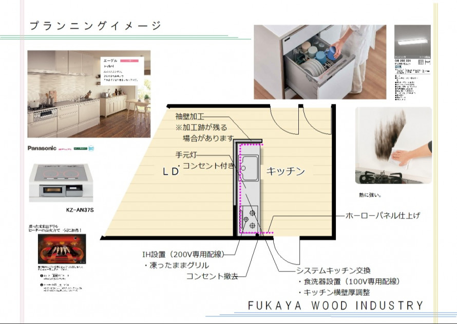 お客様のご希望は255cm幅のキッチンでしたが、既存の間取りでは袖壁の加工が必要となるため、事前に入念な現場調査を実施。