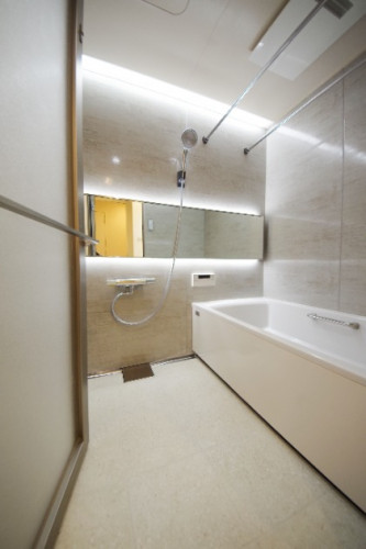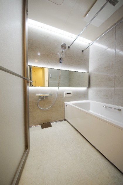 ミラー下からやわらかく広がる照明は、気分に合わせて光の色を変えられます。ワンランク上の空間が、毎日の入浴時間をよりくつろぎのひとときへと変えてくれます。