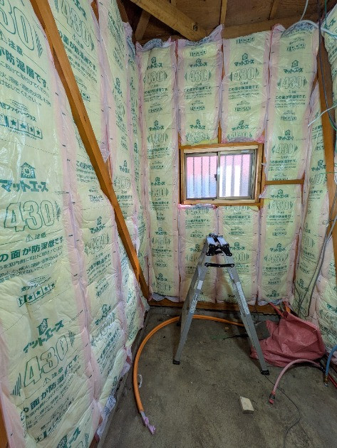 外壁面と室内壁面に断熱材が入っていませんでしたので