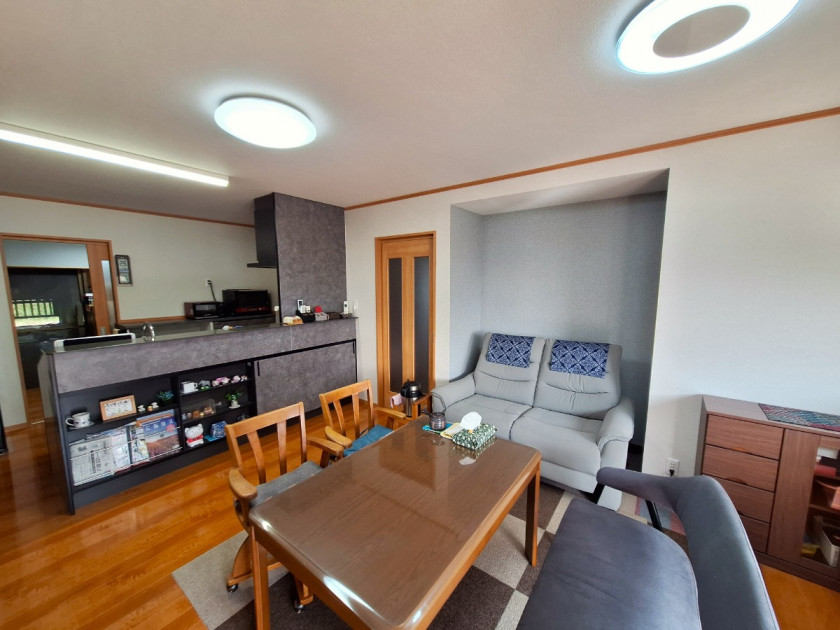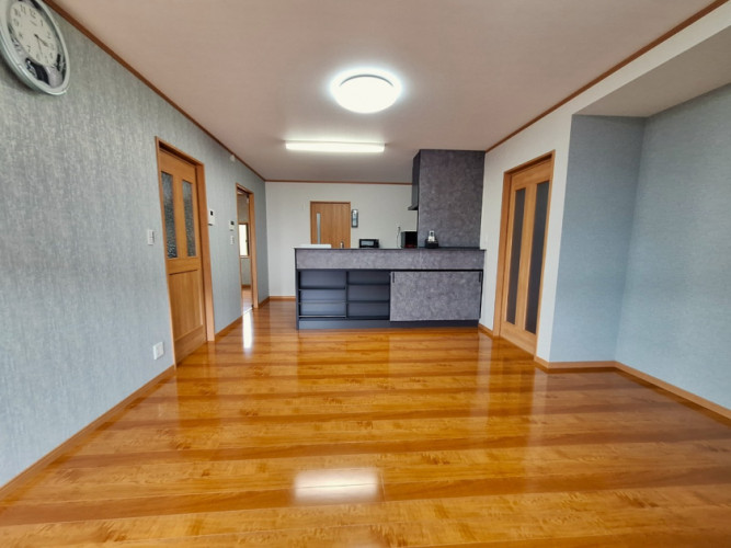 間仕切り壁がなくなりキッチンとリビングがオープンになり広々感じられるようになりました