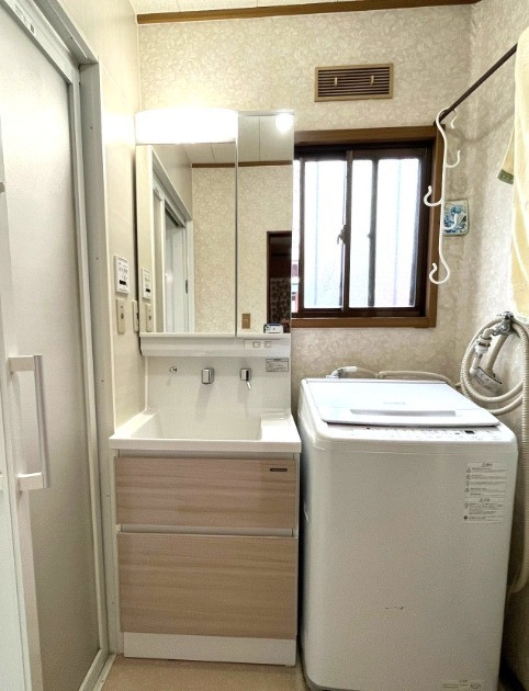 周辺に置いていた物が綺麗におさまってすっきりした洗面スペースになりました。