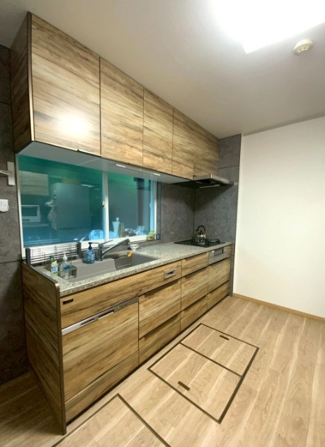 今回のキッチンは木目調を採用し温もりある空間になりました。