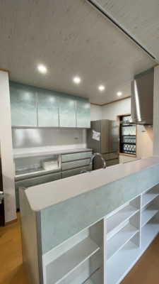 吊戸棚を無くして、キッチン背面棚とカップボードを設置することで、キッチン全体がスッキリとした印象になりました✨