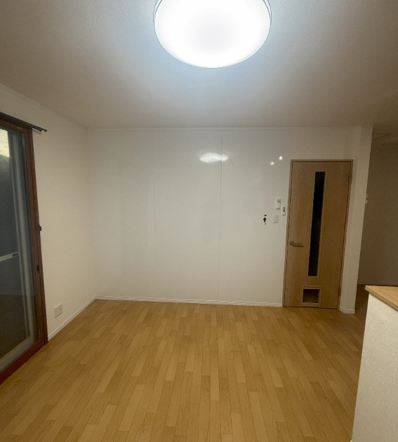 明るいペットドアで自由な動線を確保し、壁一面には磁石対応のエマウォールを施工。