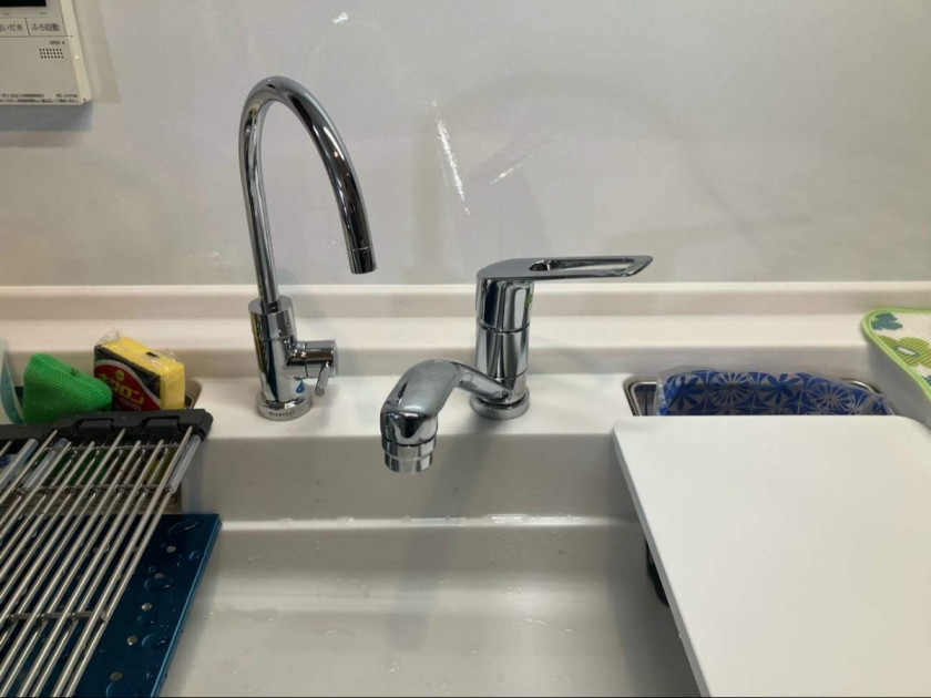 今回節水タイプの水栓にして手元まわりもすっきりしました。