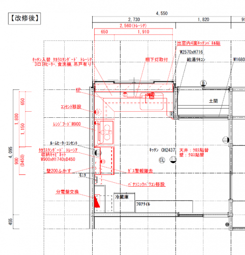 L型の入れ替えという事ですが、ただの商品入替にならないように注意した点は、既存の窓がそのまま残らないように出窓内にもホーローパネルを巻き込み、キッチンが全容として真新しく感じていただけるように配慮しております。(写真は設置前ですが内窓も付けさせて頂いたことで、窓まわりもリニューアルしております)また、これまでL型キッチンのコーナー上で炊飯器やポットなど家電を利用しておりましたが、ガス横にキッチン同仕様の家電収納をもうけさせて頂いたことで実用的にも使い勝手を向上させております。