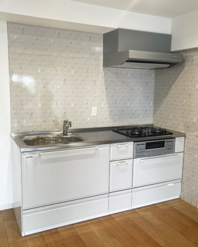 キッチンはエーデル、キッチンパネルはムーミンをモチーフとした、北欧テイストの絵柄を選びました。