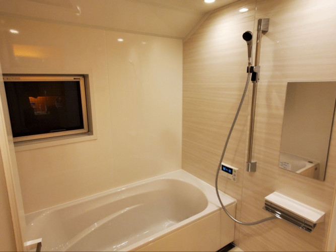 浴室内に天井の勾配があるため、ぴったりサイズのグランスパを採用。