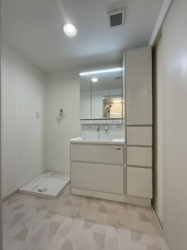 洗面はタカラスタンダード「ファミーユ」を採用し、ホーロー製トール収納をプラス。収納力が大幅にアップし、タオルや洗剤、ストック品もすっきり収まりました。ホーローの壁パネルで汚れにくく、お掃除も楽々。毎日快適にお使いいただけます。