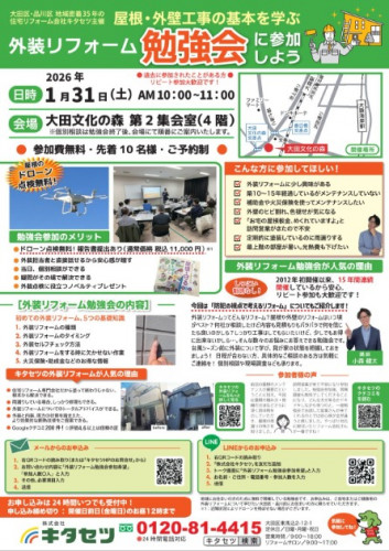 健康で快適な住まい「リフォームの キタセツ」☆大田区施工実績トップクラス|【無料】2026/1/31(土)外装リフォーム勉強会申込み受付中!|☆ご参加特典多数の【2026春のおタカラリフォーム相談会】をお楽しみに♪|国・都・区の補助金・助成金取扱店|