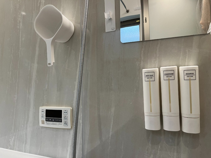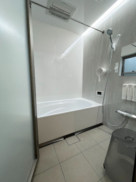 浴室については、とにかく掃除が楽であることと、保温性に優れた浴槽を希望されました。浴室はどうしてもカビや水垢汚れが気になりやすい場所なので、棚や鏡など既存の設備は全てなくし、水栓も掃除しやすい仕様であることを優先しました。必要なアイテムは全てマグネットで後付けし、丸洗いできるようにしました。
