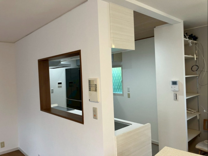 改装後は作った料理をそのままダイニングテーブルへ座っている家族に渡すことが可能です。