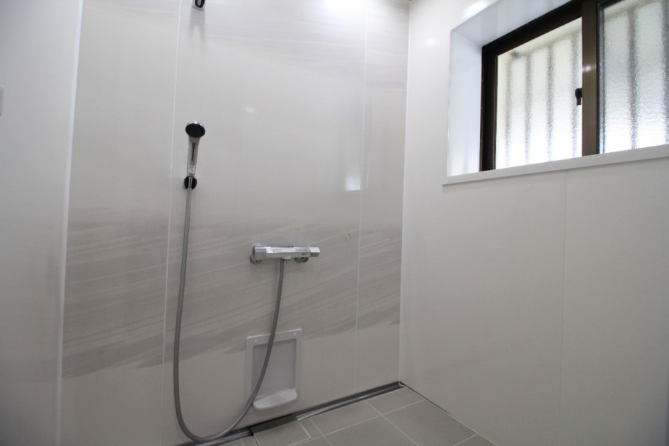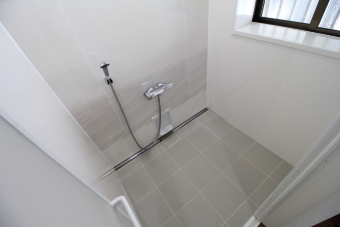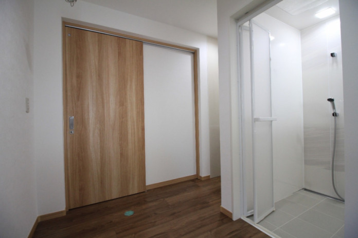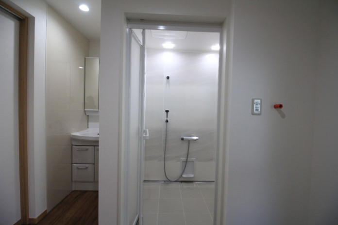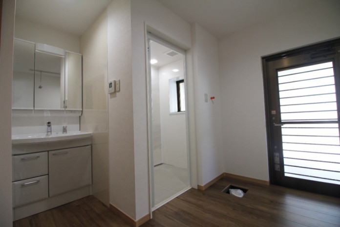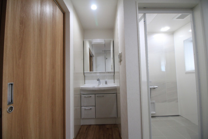 浴室の幅を約半分にして、空いたスペースに洗面化粧台を設置しました。