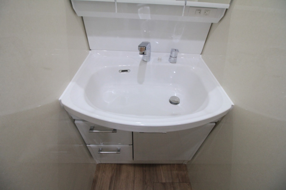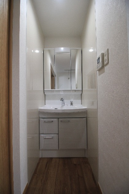 浴室を小さくして、空いたスペースに洗面化粧台を設置しました。