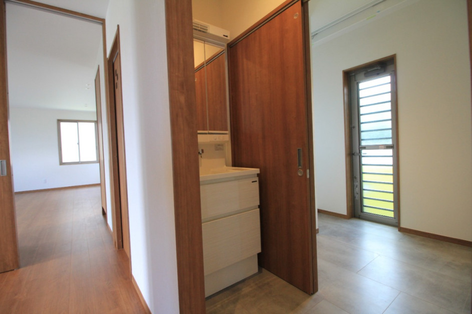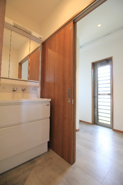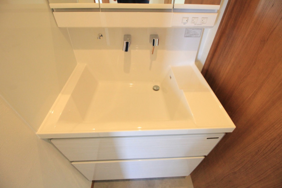 手前に洗面化粧台を設置しました。