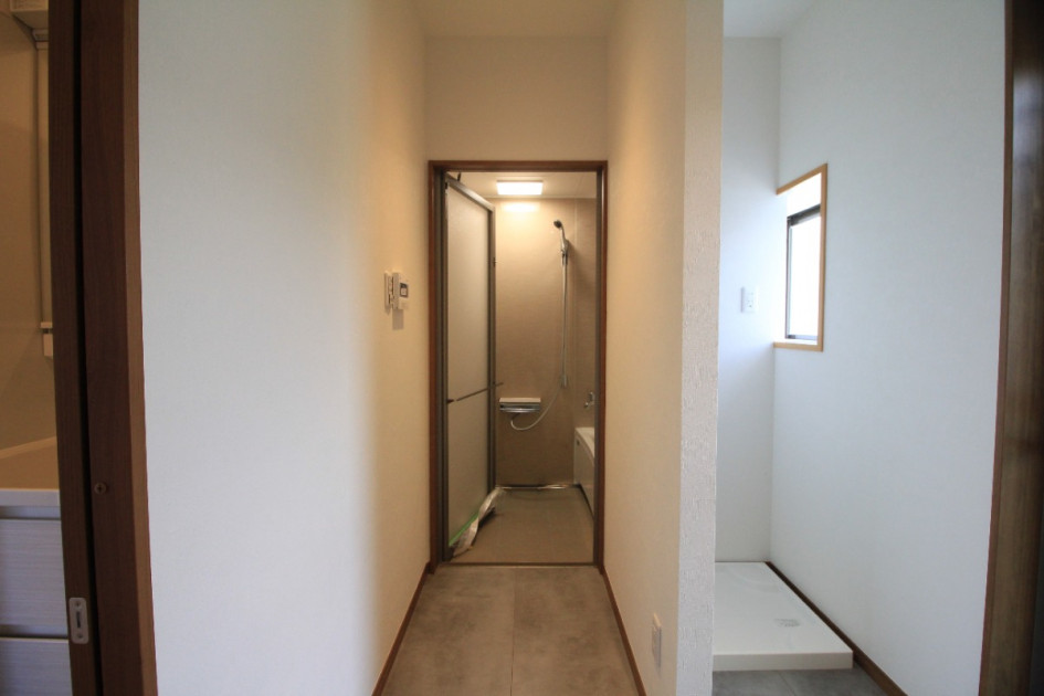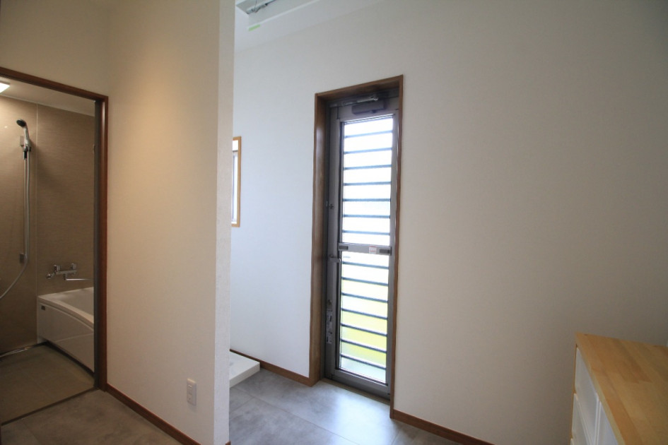 手前が洗面脱衣所、奥に浴室を配置しました。