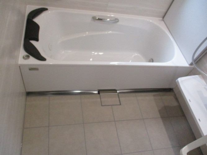 工事前のシステムバス床が剥げてきていたので、新しいグランスパでイメージチェンジ