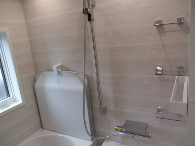 お客様の希望で浴槽の向きと洗い場の向き変更及びルーバー窓が寒いというお悩みを持っておられたので、