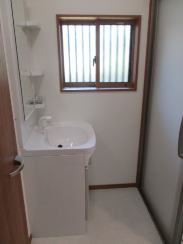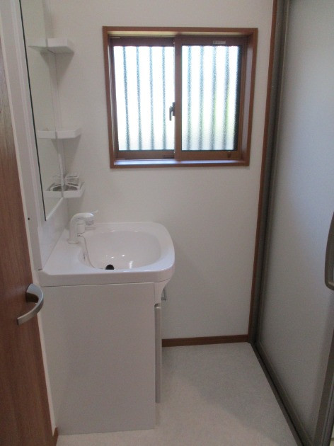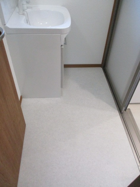 造り付けの流し台を撤去し、間仕切壁を移動したので洗面脱衣室は狭くなりましたが、