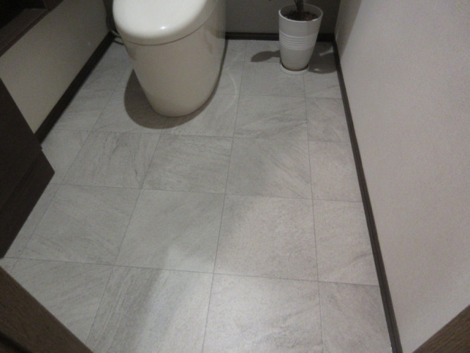 トイレ入口の敷居から床までの段差が8㎝あった為、敷居の高さまでまで床を嵩上げし、