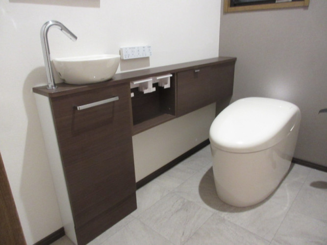 タンクレスのトイレ及び新しいドレッサーに取替え、照明器具もダウンライトに変更しました。