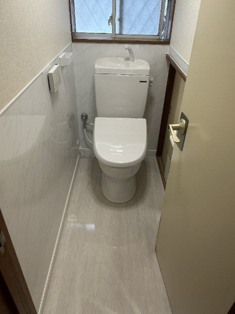 トイレの壁も下半分をパネルにしていただき、汚れも拭くだけできれいになります。