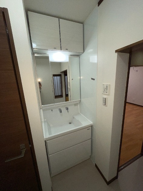 ハイバックタイプで洗面ボールがすっきりして広く使える洗面台です。