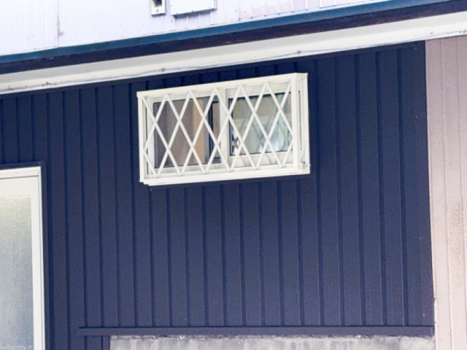 外壁トタンも張り替えてすっきりしたヒシクロス面格子のペアガラスに交換しました。