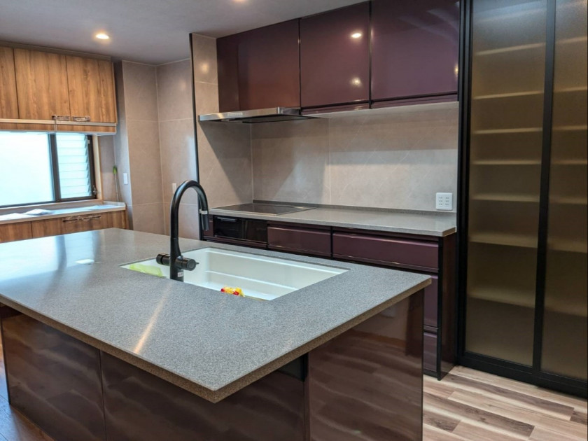 薄暗く空気の流れも悪かった。シンクをアイランドにしたので