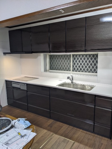 キッチン出窓内にパネルを貼ってお掃除しやすくなるよう工夫をしました。