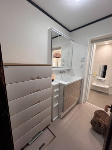 洗面台が以前よりコンパクトになったため、タンスを置くスペースができました。