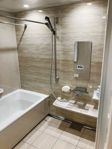 浴室全体カラーは、温かみのあるベージュをベースに、清潔感のあるホワイトを組み合わせた落ち着いた雰囲気に仕上げました。