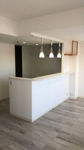 オシャレなペンダントライトが目を引く明るいキッチン空間に生まれ変わりました。