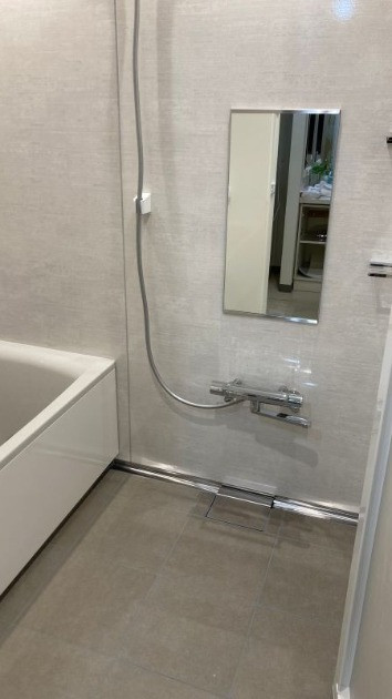 カウンター無しのスッキリとした浴室へとリフォームしました。