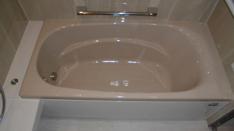 艶が美しくお掃除もしやすいホーローの壁パネルと浴槽にリフォーム。
