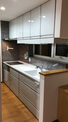 お掃除の大変だったタイル壁からホーローのキッチンパネルになり、汚れてもササッとカンタンに拭けるようになりました。