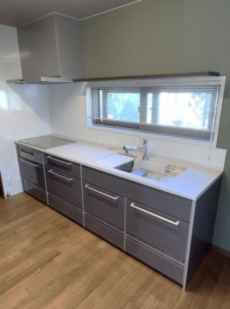 扉カラーはコンクリート柄を採用し、スタイリッシュな印象のキッチン空間に生まれ変わりました。