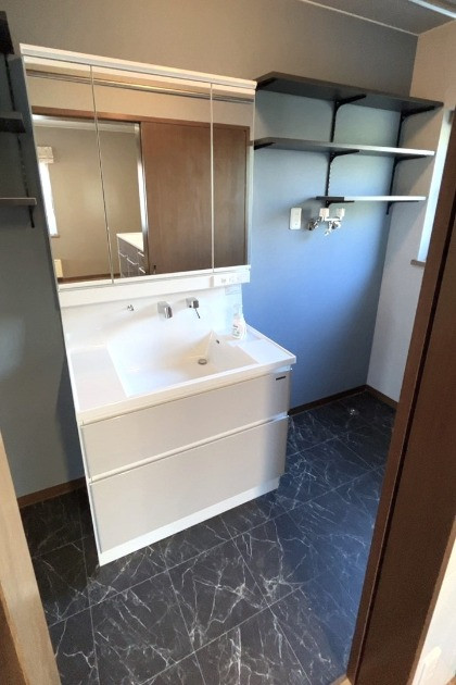 1階も2階も同じシリーズ・同じ扉カラーの洗面化粧台を採用し、統一感がありスタイリッシュで快適な洗面空間へと変わりました。