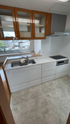 まだ使える既存の吊戸棚は活かしつつ、下台とレンジフードを交換しました。
