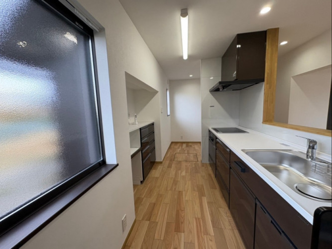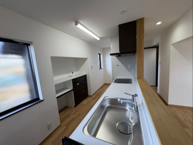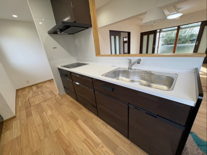 また、壁付けだったキッチンを対面式に変更し、リビング・ダイニングとのつながりを確保。明るく開放的で、家族の気配を感じながら料理ができる空間へと生まれ変わりました。