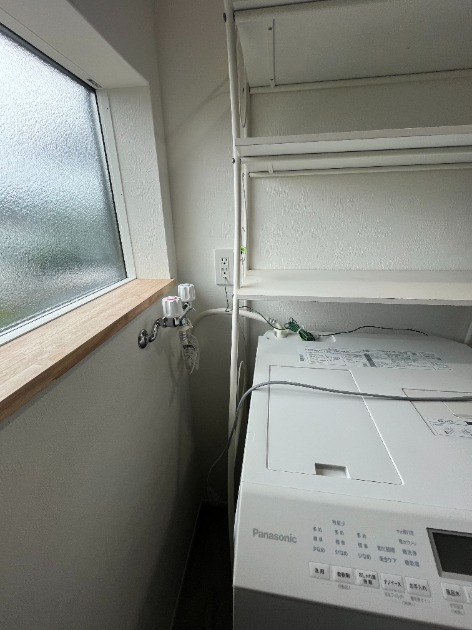 窓の高さから水栓、コンセントの位置までしっかり計画しています。洗濯機は混合水栓でお湯も使える様に!