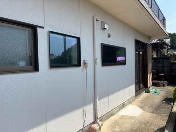 勝手口からFIX窓、引違い窓の取替え(はつり工法)にて「先進的窓リノベ補助金」¥105,000-