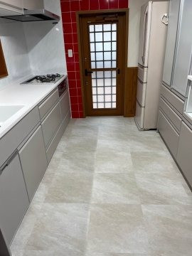 キッチンが今回重ね張りをした床との色とマッチしていて嬉しいです!
