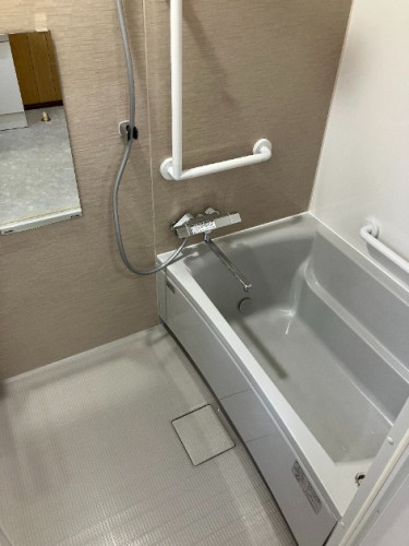 家族の一人の体が不自由になったこともあり、親戚も近くにいるしばらく住んでいなかった家に引っ越すことにしました。それに伴い在来浴室のお風呂をユニットバスへ入れ替え。滑りにくい床で、ハンドバーを設置して安全かつ暖かい浴室にリフォーム出来ました。