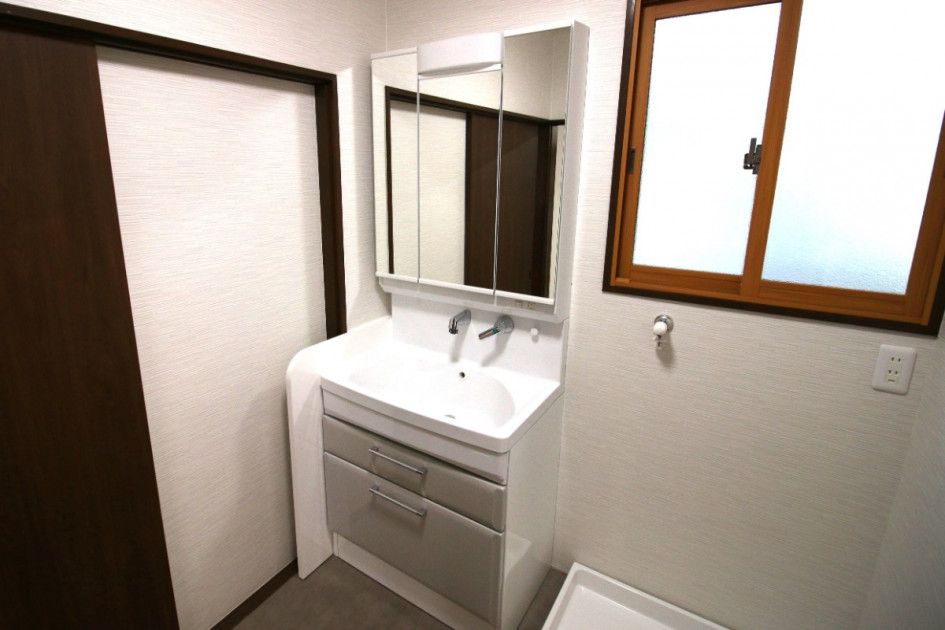 毎日の身支度や洗濯前の下洗いなど使用頻度が多くなるため収納もたっぷりにしました。