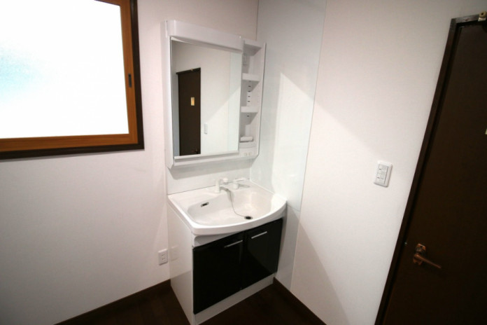 2Fは三面鏡のスライドタイプに・3Fは1面鏡収納付きにしました。