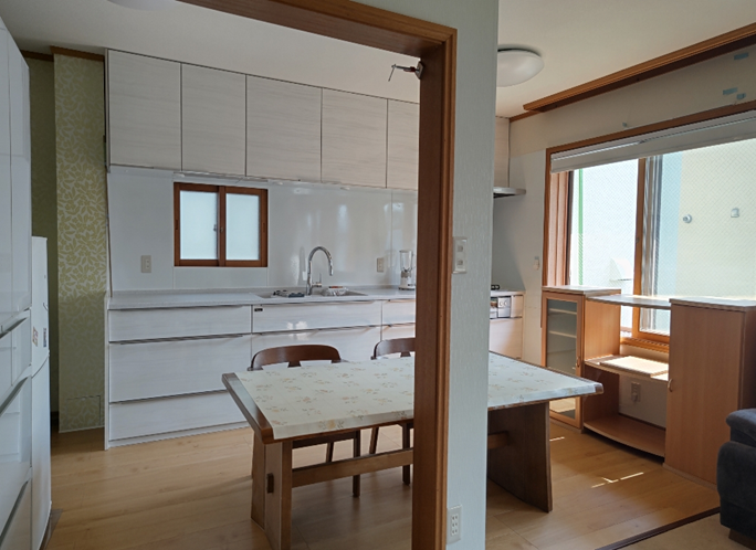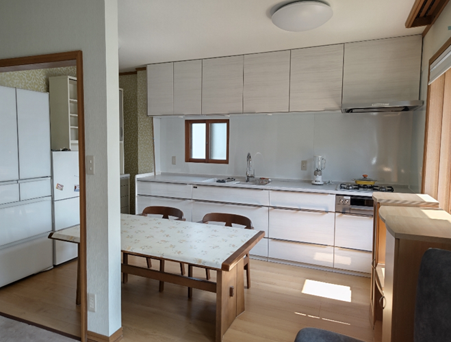 間仕切り壁を撤去し、キッチンスペースとダイニングを同じ空間に間取りを変更いたしました。
