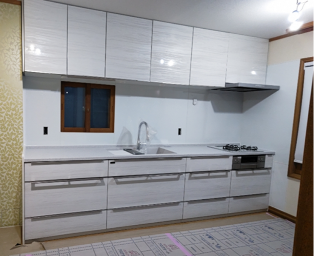 リフォーム前はL型キッチンでスペースが狭く、暗かったことを悩んでいました。